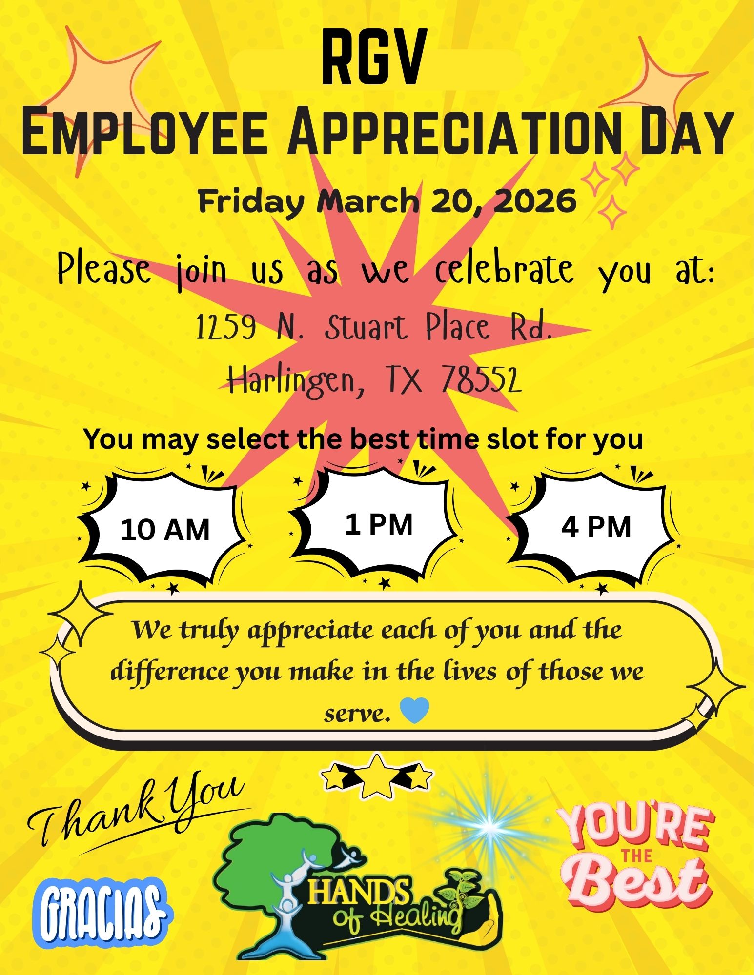 Our Employee Appreciation Event was a heartfelt celebration dedicated to the incredible Hands of Healing staff whose compassion and commitment make a difference every day. It was a special time to come together, reflect on the meaningful work being done, and recognize the dedication that each team member brings to those we serve. We are truly grateful for their hard work, resilience, and the care they show—it does not go unnoticed, and it is deeply appreciated.